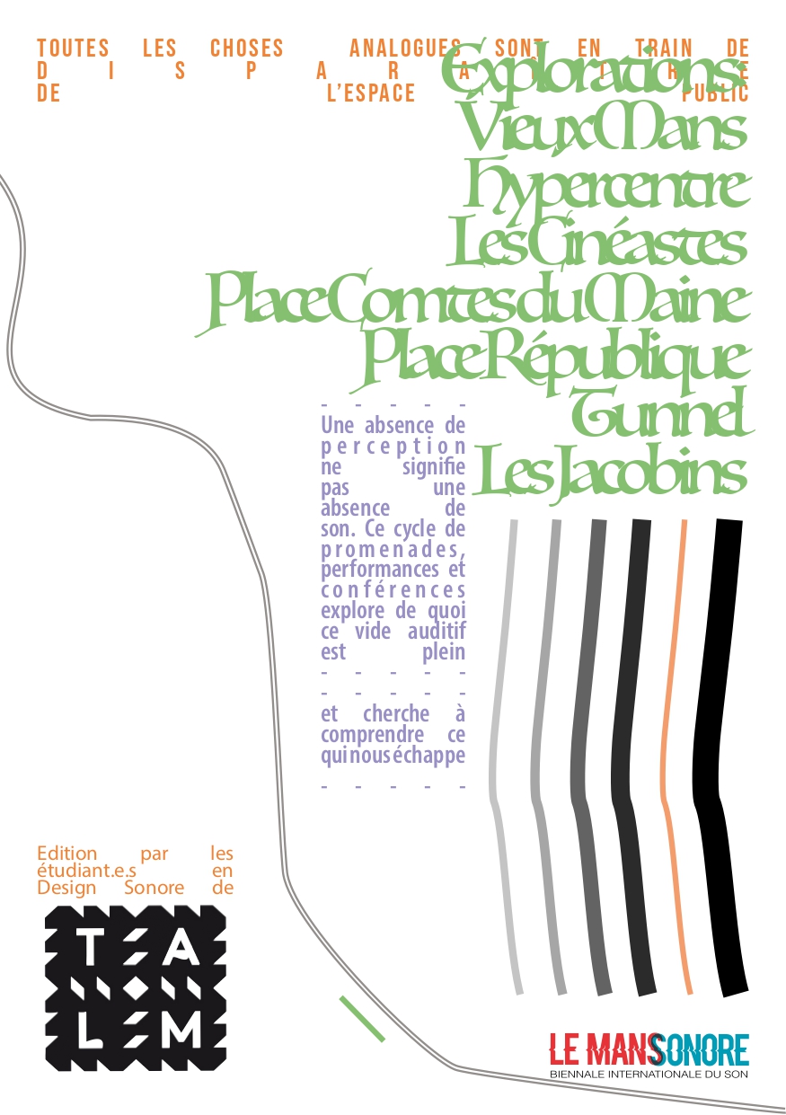 Projet réalisé dans le cadre d’un workshop proposé par l’École Supérieure d’Art et de Design du Mans (TALM), en collaboration avec l’artiste allemande Christina Kubisch, à l’occasion de la biennale internationale « Le Mans Sonore ».